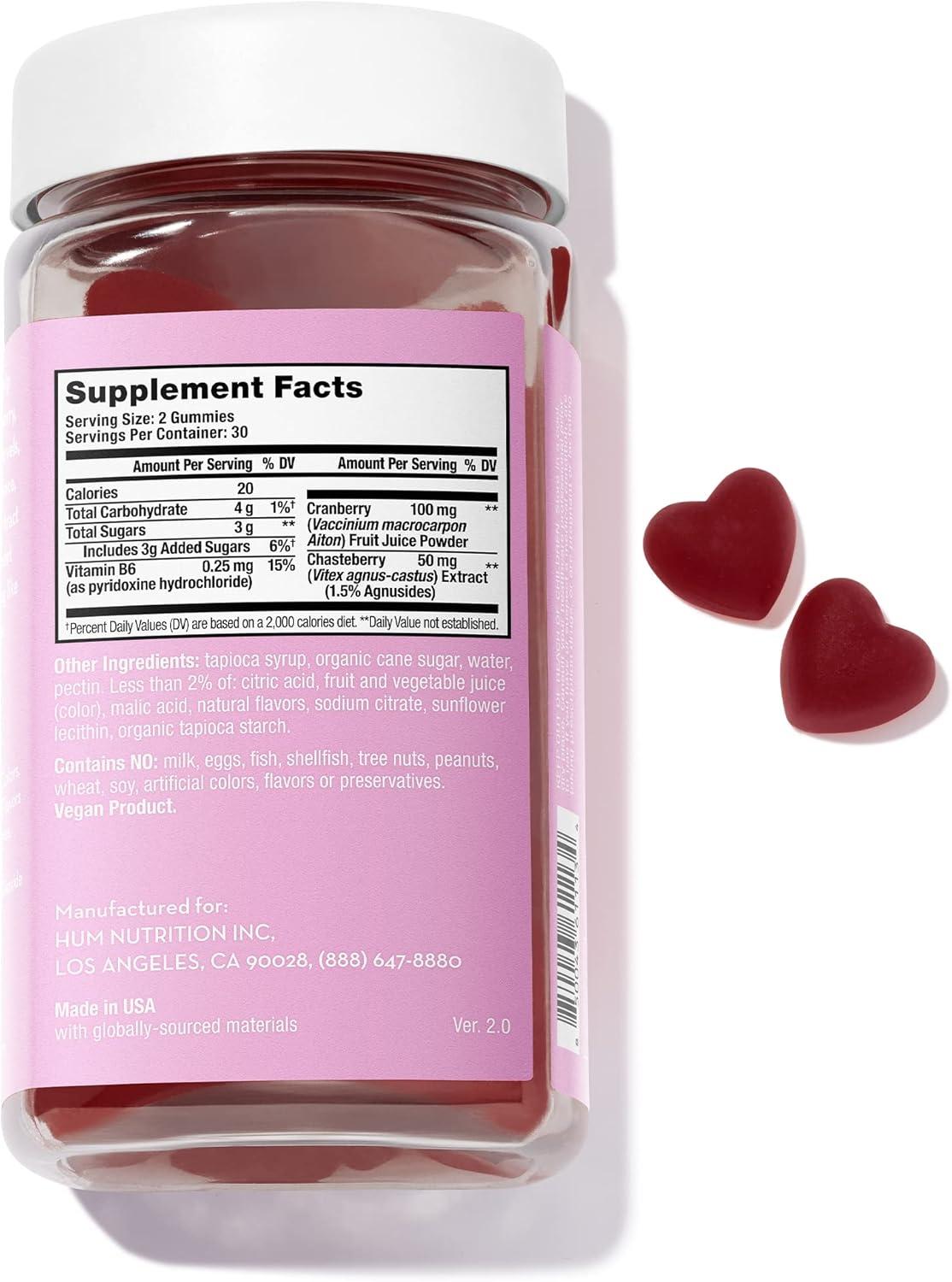 HUM Nutrition SOS PMS Gummies, PMS Support Supplement for Women, Support Cycle Symptoms, Bloating, Hormonal Balance, Includes Vitamin B6, Cranberry & Chasteberry Vitex, Gluten Free, 60 Vegan Gummies(30-Day Supply)